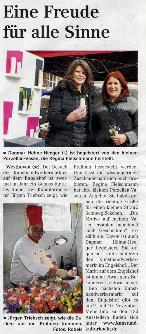 Aktuelles Der Engelshof Kunsthandwerkermarkt Anfahrt Letzter Markt Archiv* mit * markierte Links sind noch in Arbeit Definition Glas* Keramik* Filz* Porzellan* Leder* Encuastik* Mokume Gane* mit * markierte Links sind noch in Arbeit Pressemitteilung Artikel über uns Überschriften* Archiv* mit * markierte Links sind noch in Arbeit Impressum Sonstiges* mit * markierte Links sind noch in Arbeit Engelshof* Letzter Markt Teilnahme Info Anmeldung Info für teilnehmende Aussteller am kommenden Markt Meinungen Sonstiges