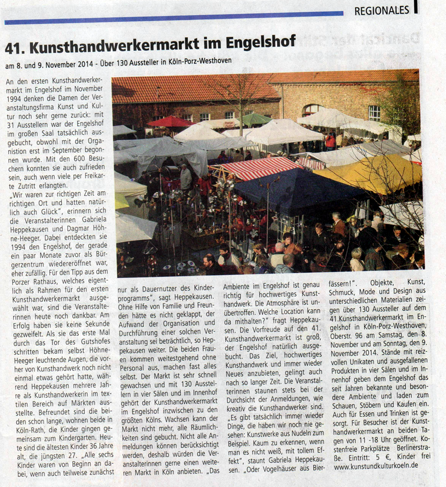 Aktuelles Der Engelshof Kunsthandwerkermarkt Anfahrt Letzter Markt Archiv* mit * markierte Links sind noch in Arbeit Definition Glas* Keramik* Filz* Porzellan* Leder* Encuastik* Mokume Gane* mit * markierte Links sind noch in Arbeit Pressemitteilung Artikel über uns Überschriften* Archiv* mit * markierte Links sind noch in Arbeit Impressum Sonstiges* mit * markierte Links sind noch in Arbeit Engelshof* Letzter Markt Teilnahme Info Anmeldung Info für teilnehmende Aussteller am kommenden Markt Meinungen Sonstiges